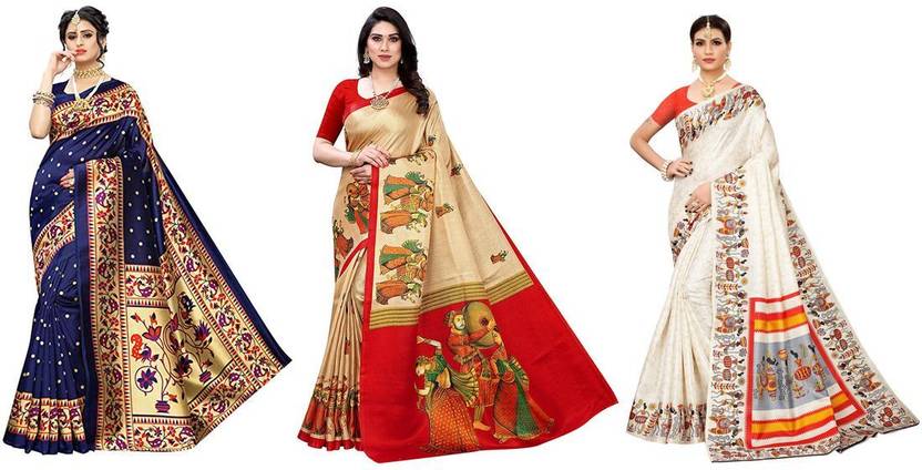 Priyashi Women's Trendy Pack of 3 Art Silk Sarees with Blouse Materials