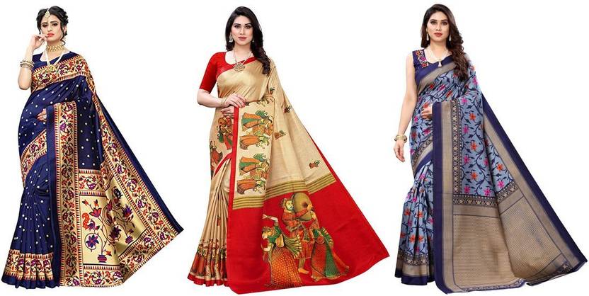 Priyashi Women's Trendy Pack of 3 Art Silk Sarees with Blouse Materials