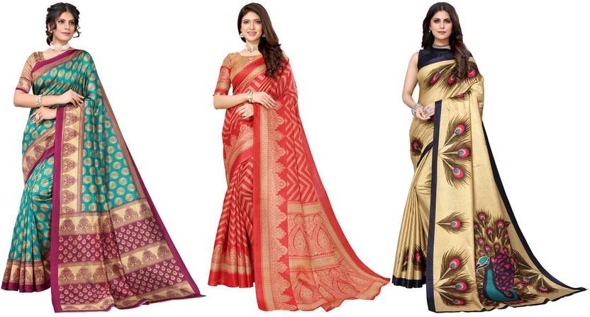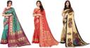 Priyashi Women's Trendy Pack of 3 Art Silk Sarees with Blouse Materials