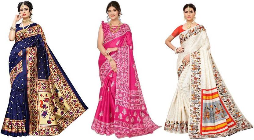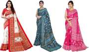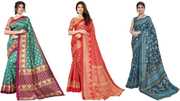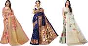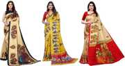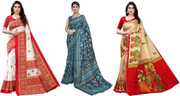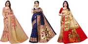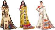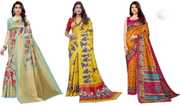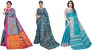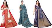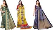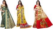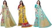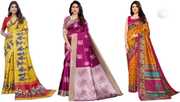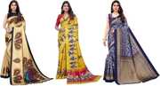 Priyashi Women's Trendy Pack of 3 Art Silk Sarees with Blouse Materials