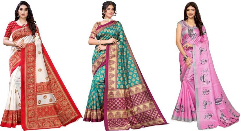 Priyashi Women's Trendy Pack of 3 Art Silk Sarees with Blouse Materials