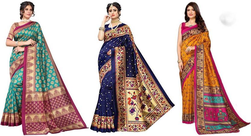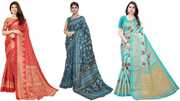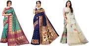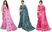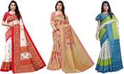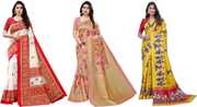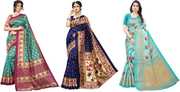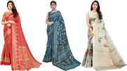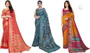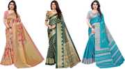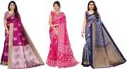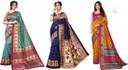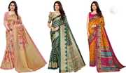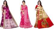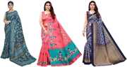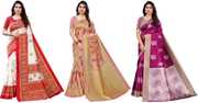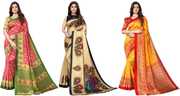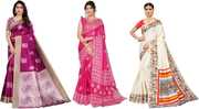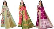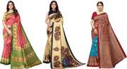 Priyashi Women's Trendy Pack of 3 Art Silk Sarees with Blouse Materials