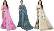 3 Saree, 3 Unstitched Blouse