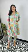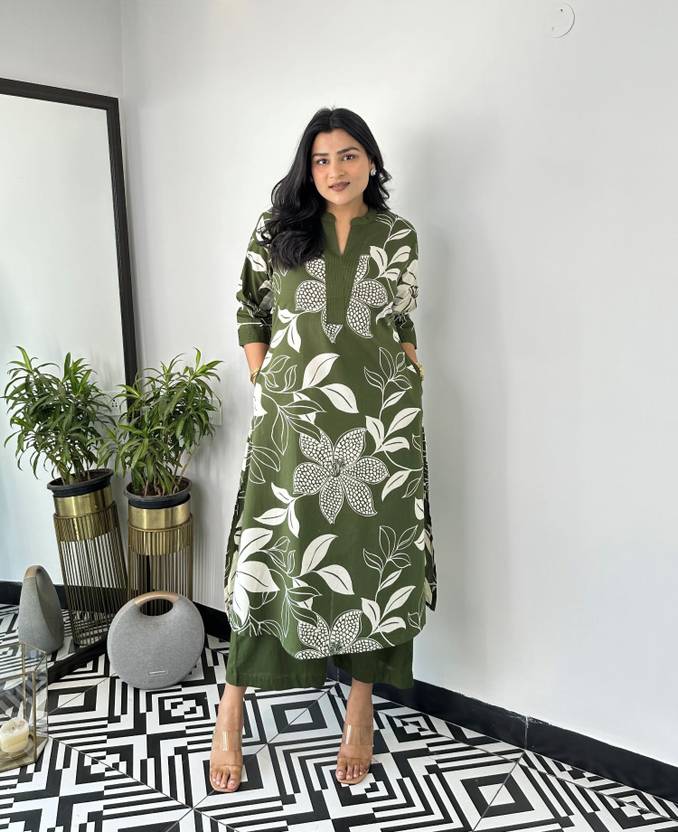 This elegant women's floral printed kurta and palazzo set is crafted from a comfortable cotton blend fabric, perfect for casual outings, festive gatherings, and daily wear. The 3/4th sleeves and knee-length design add a modern touch, while the V-neck enhances its feminine charm. The breathable fabric ensures all-day comfort, making it ideal for hot weather. The matching palazzo complements the kurta beautifully, creating a stylish yet traditional look. Easy to wear and maintain, this versatile ethnic set is suitable for parties, office wear, or even casual meetups, offering a perfect blend of fashion and comfort for every occasion.