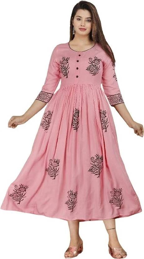 Rayon Printed Anarkali Kurta for Women | Hand Block Print | Festive Ethnic Wear | Anarkali kurta