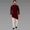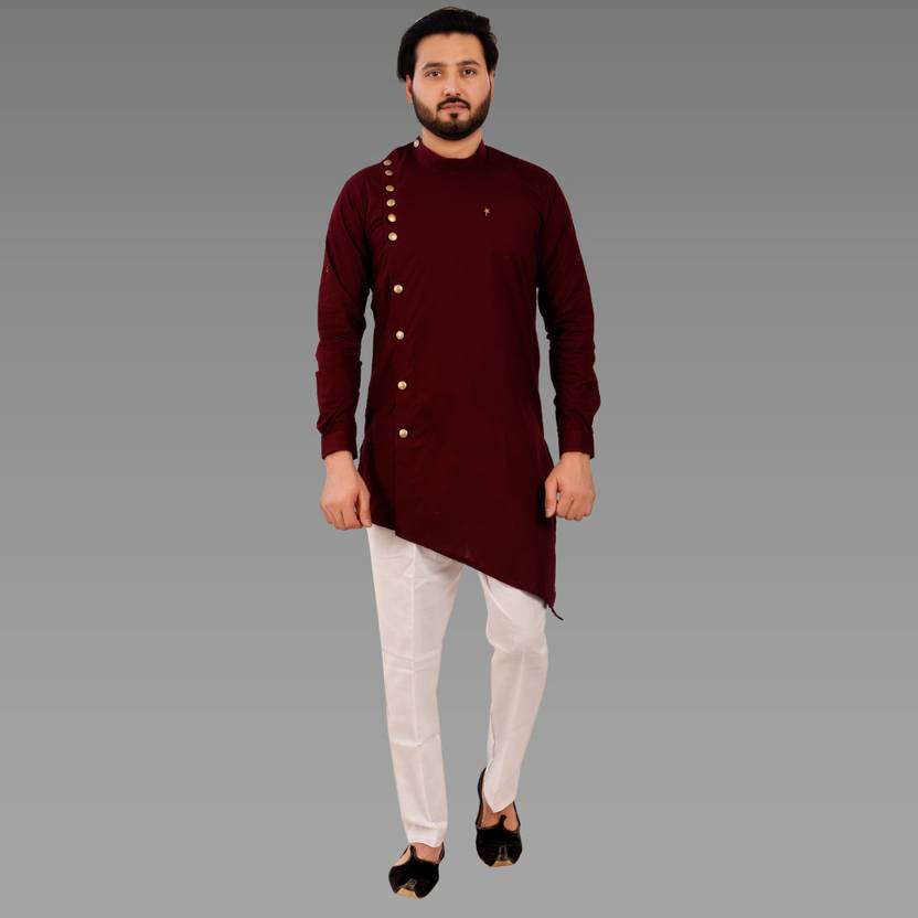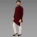 PRO ETHIC Men Solid Cotton Blend Asymmetric Kurta  (Maroon)