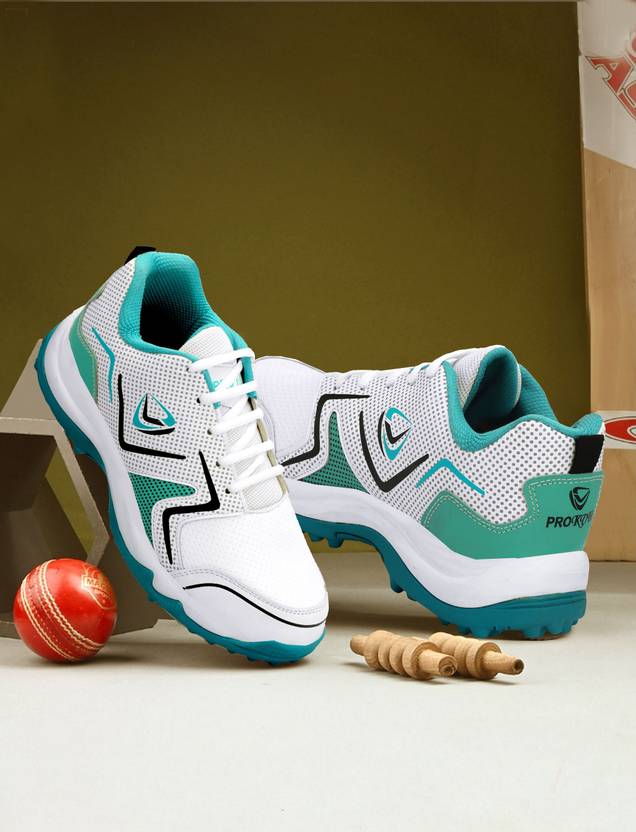PRO KVH Cricket Shoes For Men (White, Green , 8)