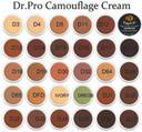 Dr Pro Camouflage Creme in a handy round packaging. Dr.Pro Camouflage Creme is an especially highly pigmented make-up which is designed to correct and cover skin disfigurements, discolorations and tattoos. Dr.Pro Camouflage Creme is especially suitable for face and neck. With proper use of the Dr.Pro Camouflage System skin abnormalities can be easily corrected. Once Dr.Pro Camouflage Creme is fixed using Fixing Powder and Fixing Spray from Dr.Pro it will be waterproof and protects the skin against damaging UV radiation. Dr.Pro Camouflage could last even under extreme conditions like swimming, heat and physical strain. Dr.Pro Camouflage Creme is available in an extensive range of shades and those are intermixable which gives the make-up a natural appearance when applied correctly.