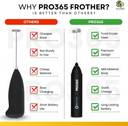 PRO365 50 W Black Hand Blender (USB Electric Frother with 3 Mixing Modes for Coffee - Handheld Whisk Beater)