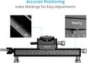 Proaim SnapRig Macro Focusing Rail lets frame your subject and focus your Camera with ultimate precision to capture Beauty in detail. Designed to step up your macro photography game, it offers more precise control than the focusing ring on your Camera does. This well-balanced focusing rail moves back & forth smoothly at your command with a Collapsible Thumb-Screw Knob. It mounts to any tripod, and its four detachable foot nails allow the rail to be used directly on the tabletop. It comes equipped with an integrated Arca-compatible clamp and includes a separate, more extended quick-release plate, making the Camera and telephoto lens mounting easy. The clamp rotates a full 360° to easily change the Camera's direction without having to remove the plate from the clamp. Also, it can use with L-Bracket & shoot in both landscape and portrait orientations without changing the Camera's position. And there are multiple index markings on the rails to ensure fine adjustment. It has a sophisticated & High-Grade CNC Aluminum body to ensure long-lasting durability & stability