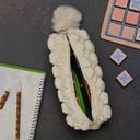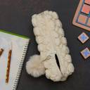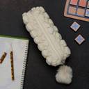 Fluffy Pencil Pouch With Cute Pompom Chain- White