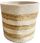 PartyStuff Jute Planter Basket White Stripe Plant Container Set (Fabric)