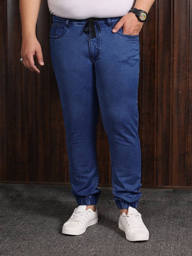 Men Plus Size Washed Light Blue Jeans has 4 Pockets