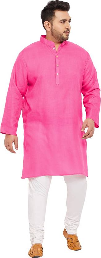 bigbanana Men Solid Straight Kurta (Pink)