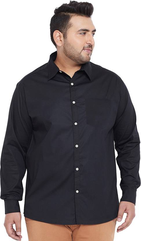 Plus Size Solid Black shirt in cotton blend with the bio-washed finish, Full Sleeve, one pocket, spread collar.