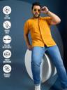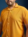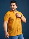 Men Plus Size Mustard Color Solid Short sleeves Shirt having Lapel Collar