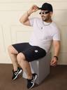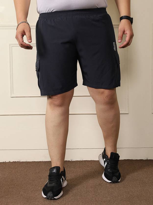 Grey solid mid rise shorts has 4 pockets, elasticated waistband and slip on closure