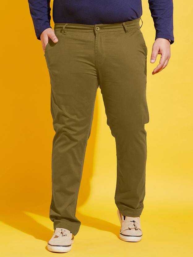 Men Regular Fit Dark Green Pure Cotton Trousers