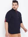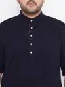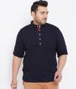 bigbanana Warren Men Solid Mandarin Collar Pure Cotton Dark Blue T-Shirt