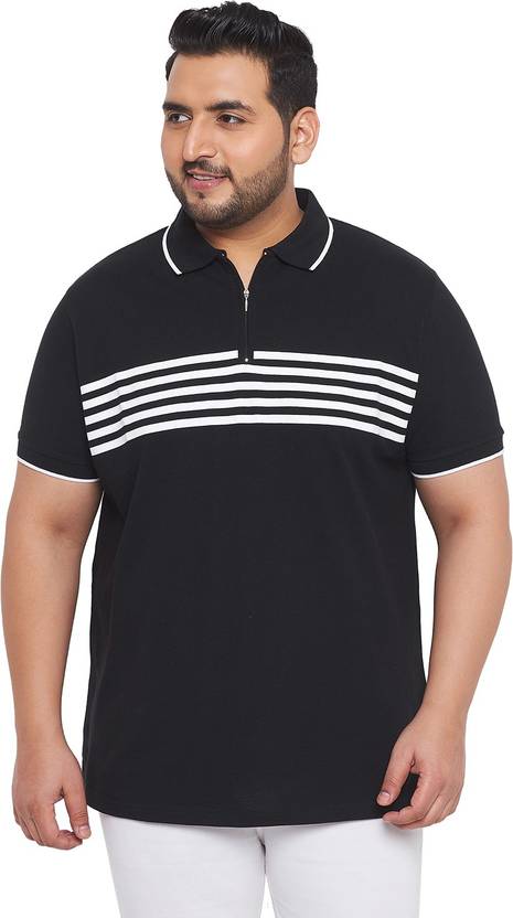 bigbanana Striped Men Polo Neck Black T-Shirt