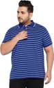 Men Striped Polo Neck Pure Cotton Blue T-Shirt