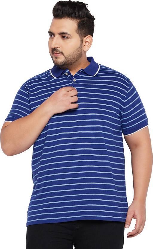 bigbanana Striped Men Polo Neck Blue T-Shirt
