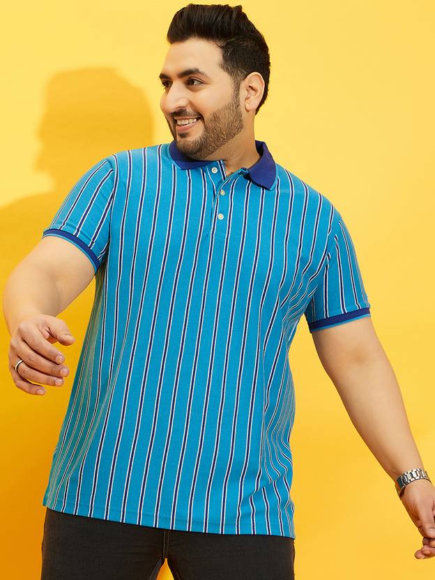 bigbanana Striped Men Polo Neck Blue T-Shirt