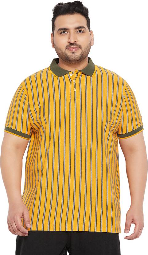 bigbanana Striped Men Polo Neck Yellow T-Shirt