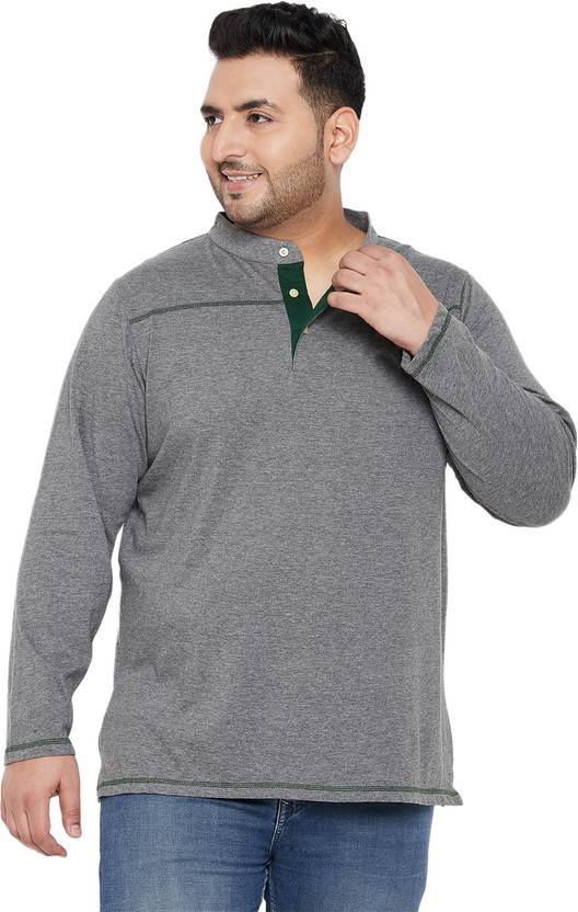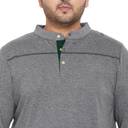 Men Plus Size Grey Tshirt has Henley Neck and Full Sleeves