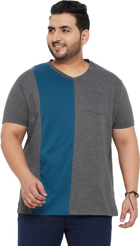bigbanana Colorblock Men V Neck Grey T-Shirt