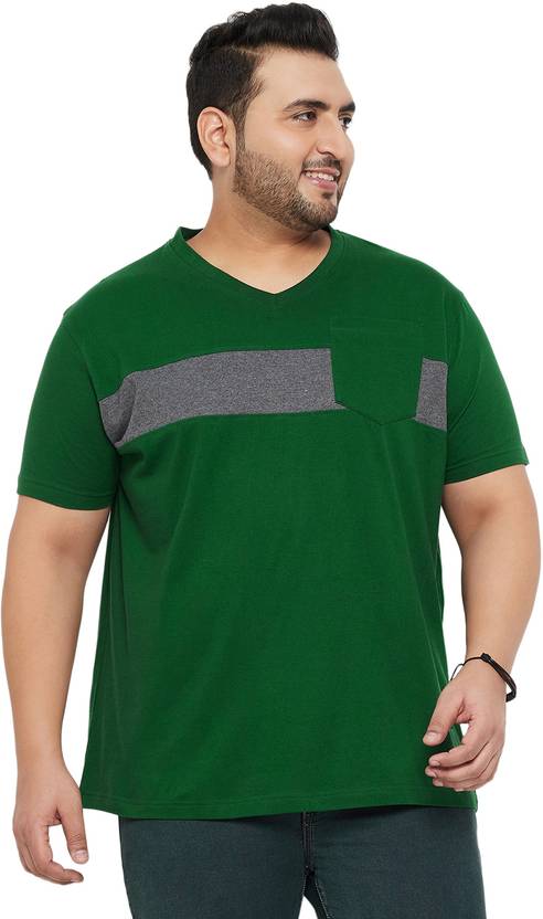 Men Solid V Neck Pure Cotton Green T-Shirt