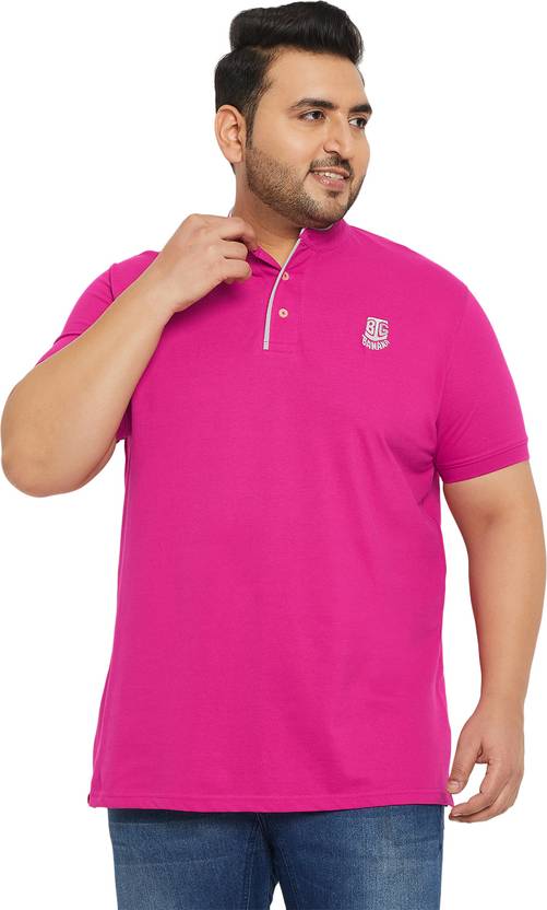 bigbanana Solid Men Mandarin Collar Pink T-Shirt