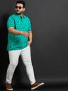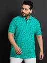 Sea Green Printed Tshirt has a Polo Collar and Short Sleeves