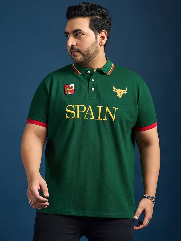 Men Plus Size Bottle-Green Typography Short Sleeves Polo Tshirt