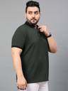 Men Plus Size Solid Short Sleeves Bottle-Green Cotton Polo Tshirt