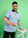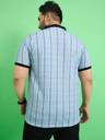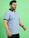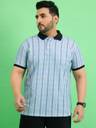 Men Striped Polo Neck Cotton Blend Light Blue T-Shirt