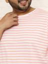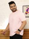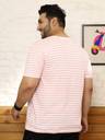 Men Striped Round Neck Pure Cotton White T-Shirt