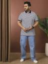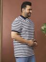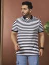 Men Striped Polo Neck Cotton Blend Black, White T-Shirt