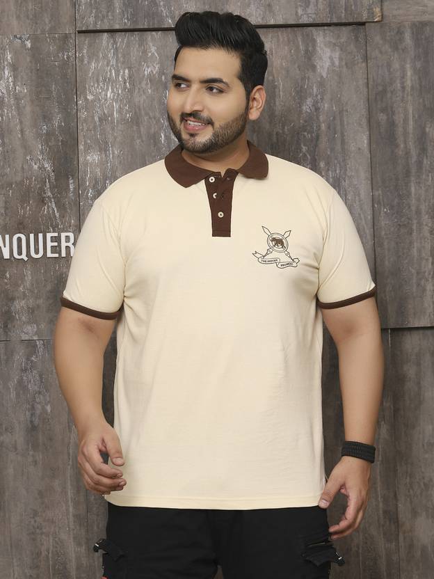 bigbanana Printed Men Polo Neck Beige T-Shirt