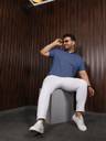 Men Self Design Polo Neck Pure Cotton Blue T-Shirt