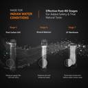 Each filter of this water purifier has been composed with care to ensure long-standing efficiency. Essentially, the filters have been crafted to complement each other and withstand the harsh nature of Indian water conditions. As a result, they deliver optimal performance for a long time and can eliminate the need for frequent replacement.