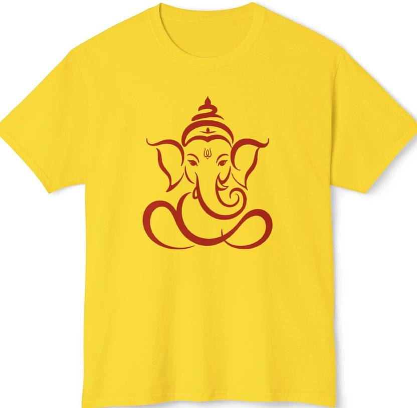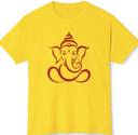 A Line Drawing of Ganesh on the Yellow Round Neck T-shirt