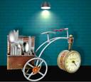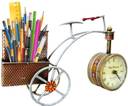 1 Compartments Iron Cycle Clock Metal Pen | Mobile Stand (Gold)