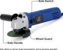 JK Super Drive 9005083 4" Inch 750W, 11000 RPM, Copper Armature Angle Grinder (110 mm Wheel Diameter)