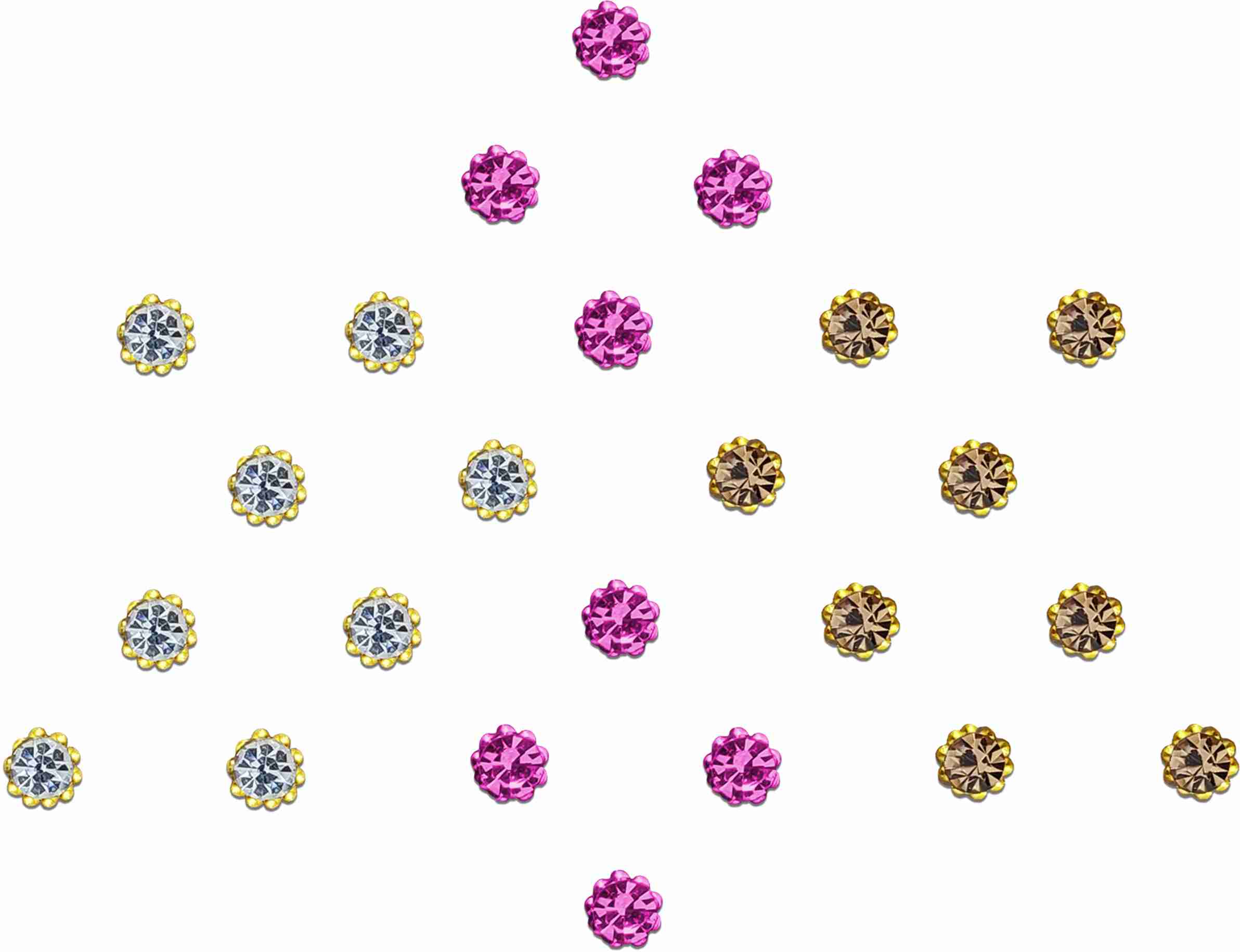 Fancy Pink and Golden Crystal Dot Bindi For Women (BV083) Forehead Multicolor Bindis (Indian Bindi)