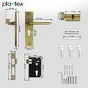 Bolt cylinder - 60 mm & pin to lock body - 45x45 mm, for any door of thickness ranging from 25 mm to 40 mm. Assured help of 36 months for handles & 18 months for cylinders as a warranty against manufacturing defects. This handle set is also tested for more than 300,000 cycles.This Mortise Plate Handle has a Premium virgin zinc alloy and brass build. It comes with a reversible brass latch with the brass deadbolt on one side and key operation from the other side. The door lock by Plantex are an excellent replacement or upgrading option with an auto-retraction mechanism & reduced noise in its handles. With the smoothest push & pull operation, it prevents the loosening of locksets even after hundreds of uses per day. It has an attractive brass antique finish with rust-free and weather-proof technology. The packaging contents set of 2 pieces of handles, 1 pcs Brass computer lock body & Cylinder, 1 covering/receptacle plate, 3 computerized Brass keys along with screws for fittings. Made in India.