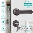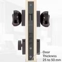 Bolt cylinder - 70 mm & pin to lock body - 45x85 mm, for any door of thickness ranging from 25 mm to 50 mm. Assured help of 36 months for handles & 18 months for cylinders as a warranty against manufacturing defects. This handle set is also tested for more than 300,000 cycles. This mortise lock has a Premium virgin zinc and Brass build. It comes with a reversible brass latch with the brass deadbolt on one side and key operation from the other side. The Zinc alloy handle is fully reversible and can be installed on both sides of the door. The door locksets by Plantex are an excellent replacement or upgrading option with an auto-retraction mechanism & reduced noise in its handles. With the smoothest push & pull operation, It prevents the loosening of locksets even after hundreds of uses per day. It has touch of black nickel matt and black finish with rust-free and weather-proof technology. The packaging contents set of 2 pieces of handles, 1 pcs Brass computer lock body & Cylinder, 1 covering/receptacle plate, 3 computerized Brass keys along with screws for fittings. Made in India.