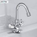 Plantex ICO-909 Pure Brass Basin Mixer with Double Handle (Mirror-Chrome Finish) Icon Mixer Faucet (Deck Mount Installation Type)