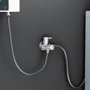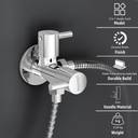 This PLANTEX 2-IN-1 ANGLE FAUCET exemplifies PREMIUM QUALITY, featuring essential components like a LEVER, AERATOR, SPINDLE, and WALL FLANGE to ensure flawless casting and functionality. The high-quality CERAMIC CARTRIDGE in the SPINDLE allows for convenient control of water flow from the spray head. The package includes a 1-PIECE 2-WAY ANGLE COCK with a WALL FLANGE and TEFLON TAPE. This versatile angle faucet is ideal for use with toilet seats for jet spray and flush, or can be connected to a washing machine and a garden/bathroom/basin with its two separate levers. The GERMAN AERATOR promotes water conservation, reducing bills while providing SPLASH-FREE WATER, and is easily removable for cleaning. The NICKEL CHROME FINISH offers a highly reflective, mirror-like appearance, ensuring a bright, rust-proof, and long-lasting addition to your bathroom.
