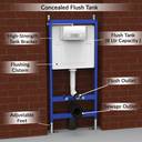 Plantex concealed tanks for toilets is a made of high density polyethylene (HDPE) and this frame is a galvanized iron (GI) material. It can perform well even in highly active conditions due to its high strength body, ensuring long lasting and leak-proof. Our concealed tank with full frame compact and space-saving design makes it perfect for wall-mounted toilets. which gives your bathroom an updated and modern look while saving space. To maximize water saving, you can choose between a complete flush for solid waste and a half flush for liquid waste using our flush tank dual flush options. it reduce your water bill.1 piece of cistern flush tank with all accessories inside and ready to be installed and used right away. with size of this wall mount flush tank is a (l) 51 x (w) 17.5 x (h) 115.5 cm – Made in India. The tank's svelte and compact design provides rapid and simple installation in addition to space savings. It guarantees a hassle-free setup because it includes all the internal accessories required.